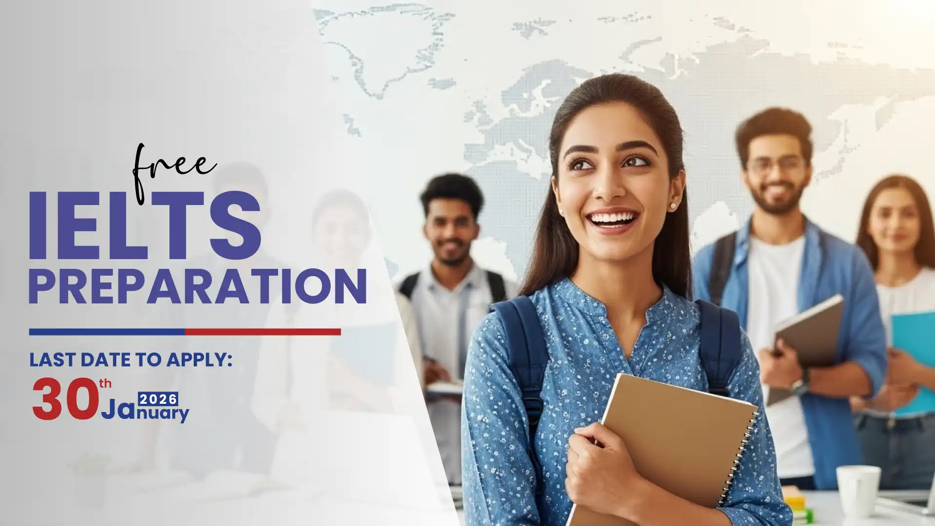 Thank you for your overwhelming response to our Free IELTS Preparation Program. Registrations have now been officially closed as we have reached the maximum number of participants. Stay connected with us for updates on future programs and opportunities.